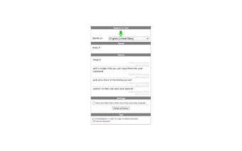 В последней версии, v2.1, добавлены дополнительные локали для улучшенной поддержки языка. В предыдущем обновлении, v2.0, были введены новые функции, включая возможность продолжать запись до ручной остановки, кнопку для удаления всех записанных историй и возможность копирования нескольких историй с помощью сочетания клавиш ctrl/alt/option+click. Функция истории может хранить до 10 записей, обеспечивая простой доступ к прошлым преобразованиям речи в текст.